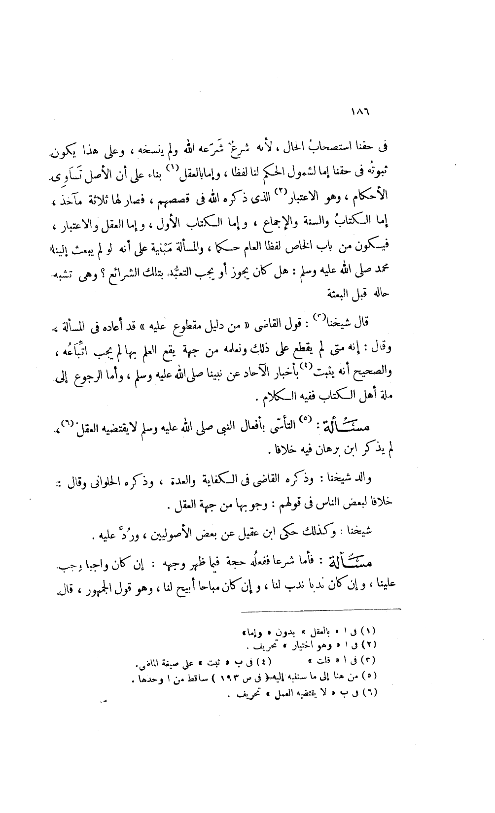 مسألة1: التأسي بأفعال النبي صلى الله عليه وسلم لا يقتضيه العقل 2