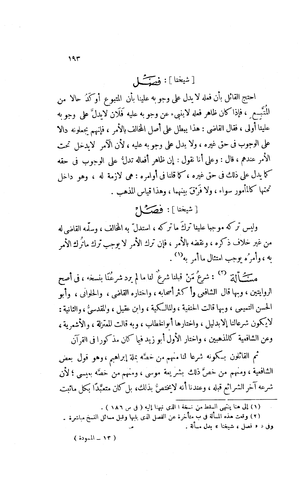 1 وقعت هذه المسألة في ب متأخرة عن الفصل الذي يليها وقبل مسائل النسخ مباشرة وفي د "فصل شيخنا" بدل مسألة.