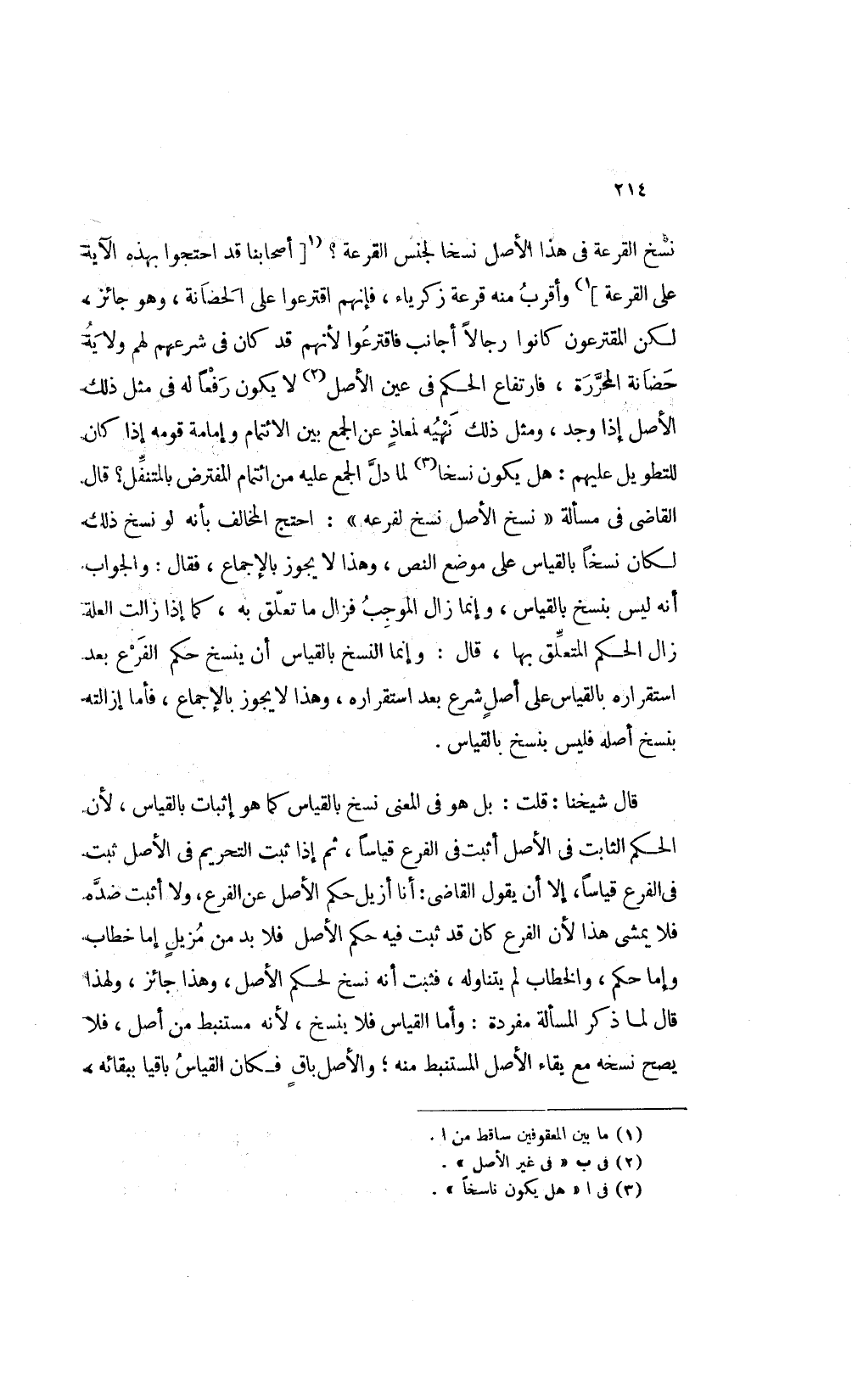 قال شيخنا قلت: بل هو في المعنى نسخ بالقياس كما هو إثبات بالقياس لأن الحكم الثابت في الأصل أثبت في الفرع قياسا ثم إذا ثبت التحريم في الأصل ثبت في الفرع قياس إلا أن يقول القاضي أنا أزيل حكم الأصل عن الفرع ولا أثبت ضده فلا يمشى هذا لأن الفرع كان قد ثبت فيه حكم الأصل فلا بد من مزيل إما خطاب وإما حكم والخطاب لم يتناوله فثبت أنه نسخ لحكم الأصل وهذا جائز ولهذا قال: لما ذكر المسألة مفردة وأما القياس فلا ينسخ لأنه مستنبط من أصل فلا يصح نسخه مع بقاء الأصل المستنبط منه والأصل باق فكان القياس باقيا ببقائه