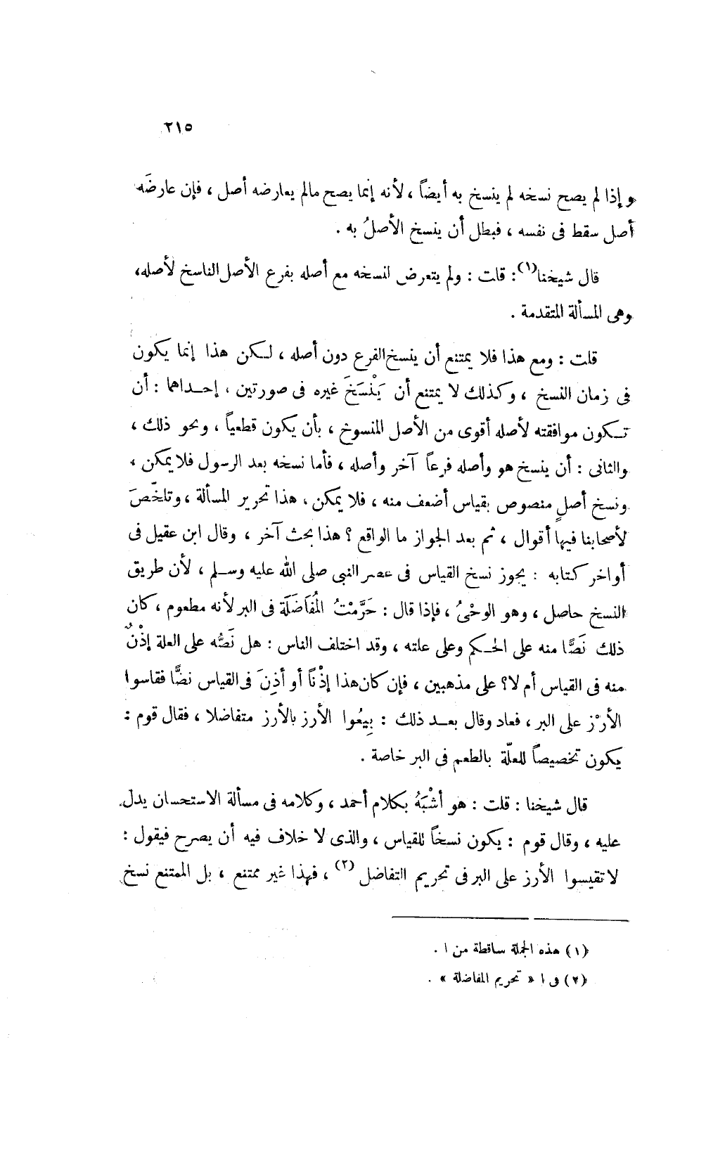 قال شيخنا قلت: هو أشبه بكلام أحمد وكلامه في مسألة الاستحسان يدل عليه وقال قوم يكون نسخا للقياس والذي لا خلاف فيه أن يصرح فيقول لا تقيسوا الأرز على البر في تحريم التفاضل2 فهذا غير ممتنع بل الممتنع نسخ