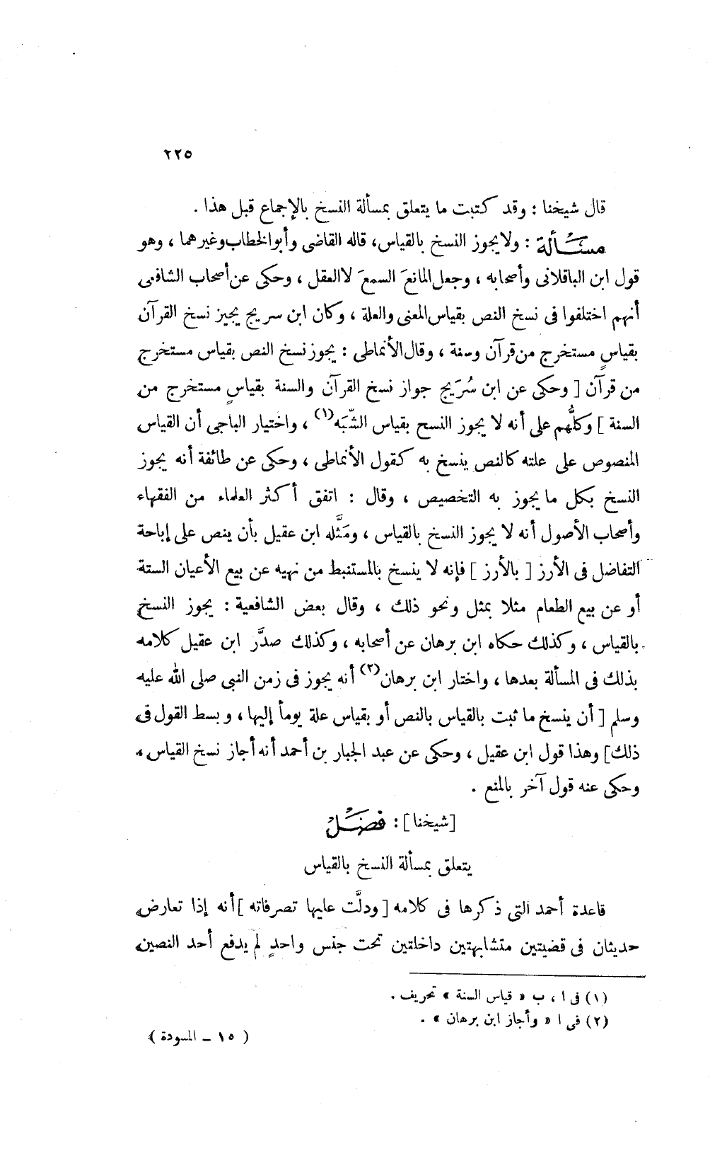 [شيخنا] فصل: يتعلق بمسألة النسخ بالقياس
