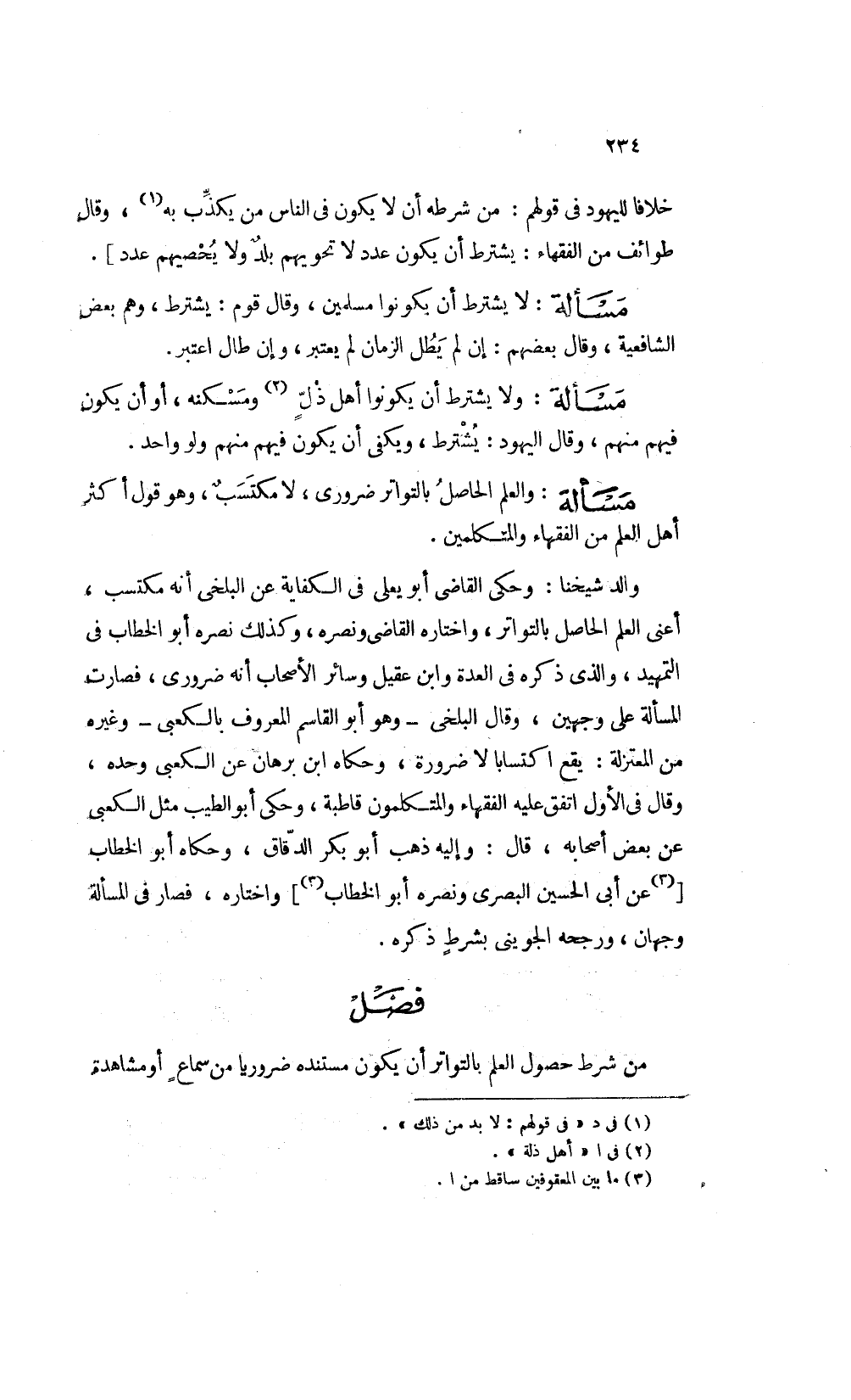 خلافا لليهود في قولهم من شرطه أن لا يكون في الناس من يكذب به1 وقال طوائف من الفقهاء يشترط أن يكون عدد لا تحويهم بلد ولا يحصيهم عدد] .