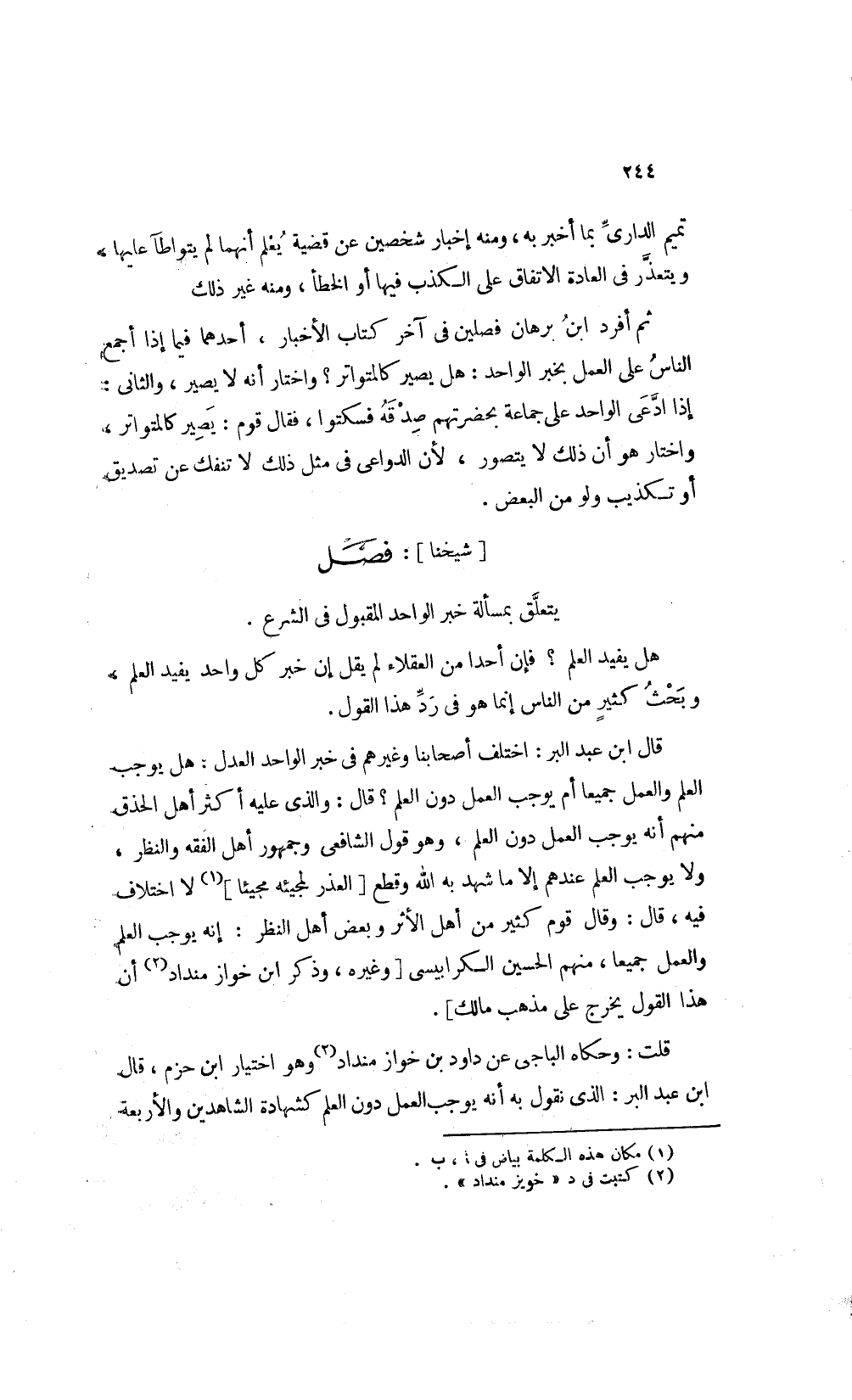 يتعلق بمسألة خبر الواحد المقبول في الشرع.