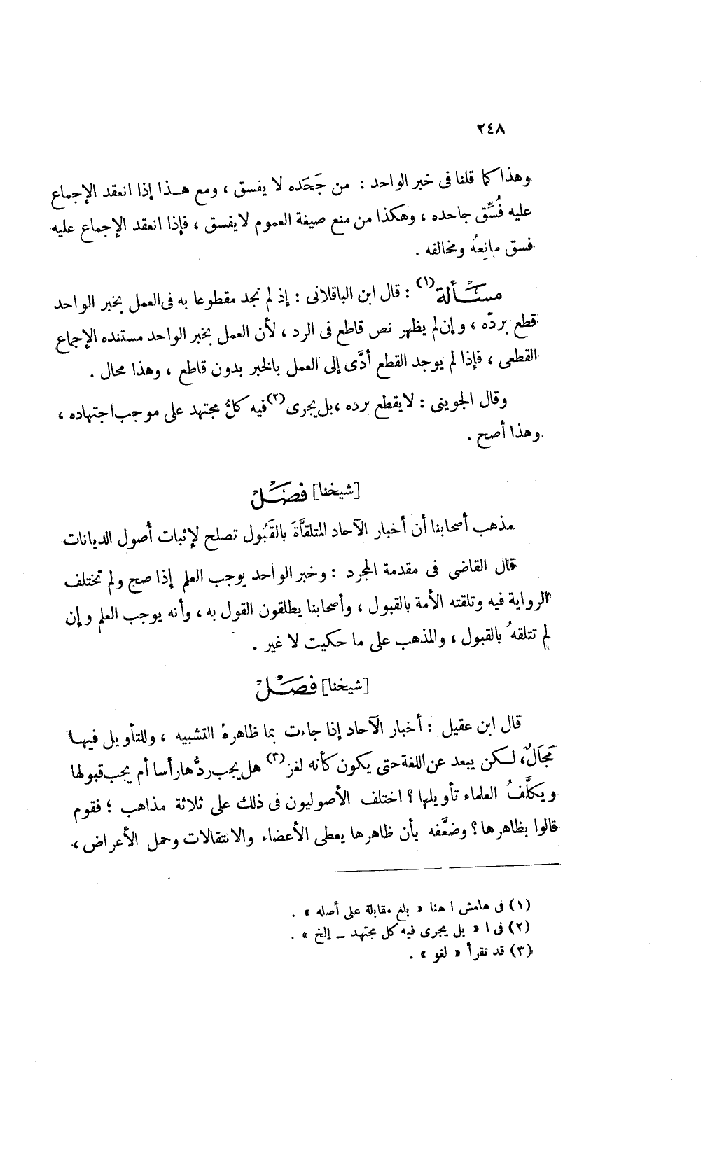 قال ابن عقيل أخبار الآحاد إذا جاءت بما ظاهره التشبيه وللتأويل فيها مجال لكن يبعد عن اللغة حتى يكون كأنه لغز3 هل يجب ردها رأسا أم يجب قبولها ويكلف العلماء تأويلها اختلف الأصوليون في ذلك على ثلاثة مذاهب فقوم قالوا بظاهرها وضعفه بأن ظاهرها يعطى الأعضاء والانتقالات وحمل الأعراض