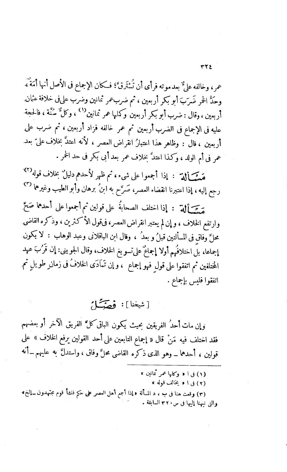 2 وقعت هنا في ب د المسألة "إذا أجمع أهل العصلا على حكم فنشأ قوم مجتهدون – إلخ" والتي نبهنا إليها في ص "320" السابقة.