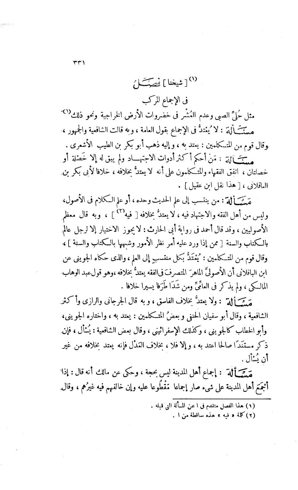 فى الإجماع المركب مثل حلى الصبى وعدم العشر في خضروات الارض الخراجية ونحو ذلك.