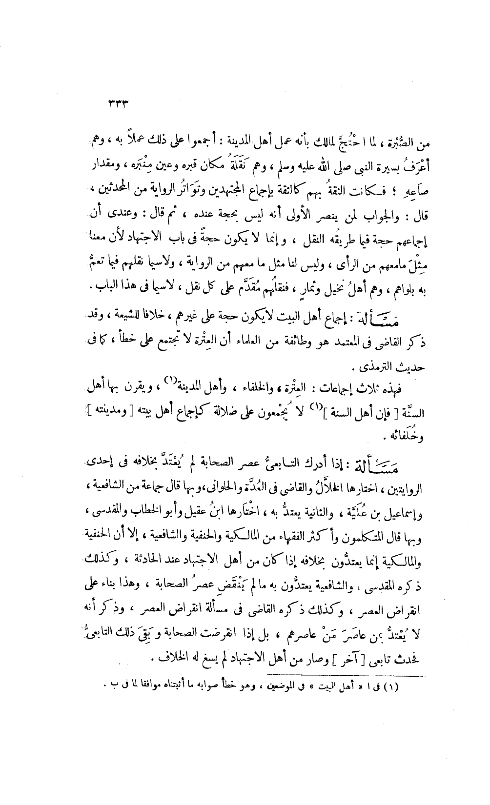 فهذه ثلاث إجماعات العترة والخلفاء وأهل المدينة1 ويقرن بها أهل السنة [فإن أهل السنة] 1 لا يجمعون على ضلالة كاجماع أهل بيته ومدينته وخلفائه.