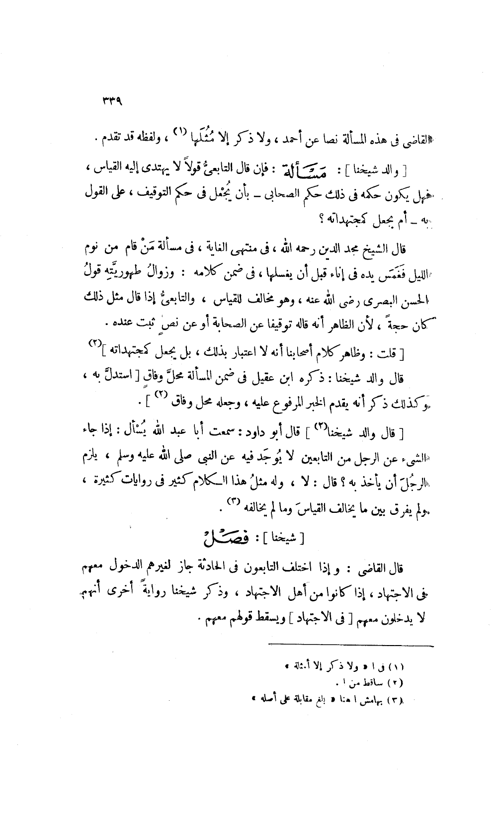 [قال والد شيخنا1] قال أبو داود سمعت أبا عبد الله يسأل إذا جاء الشيء عن الرجل من التابعين لا يوجد فيه عن النبي صلى الله عليه وسلم يلزم الرجل أن يأخذ به قال لا وله مثل هذا الكلام كثير في روايات كثيرة ولم يفرق بين ما يخالف القياس وما لم يخالفه2.
