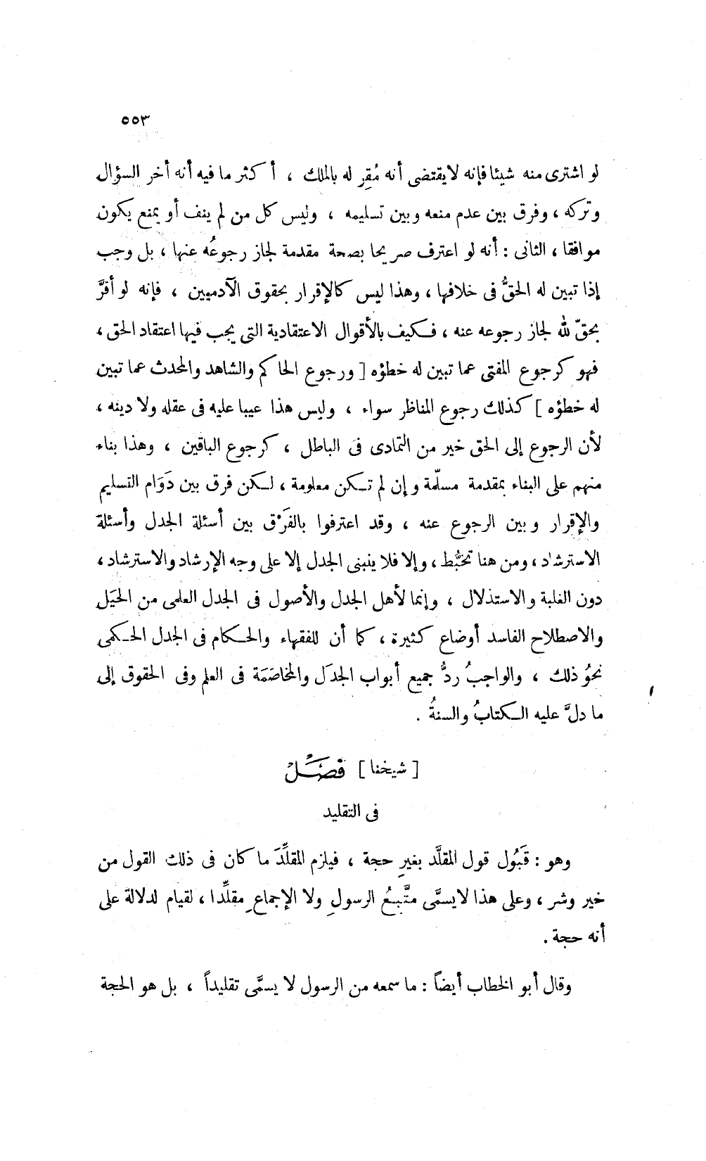 [شيخنا] فصل: في التقليد