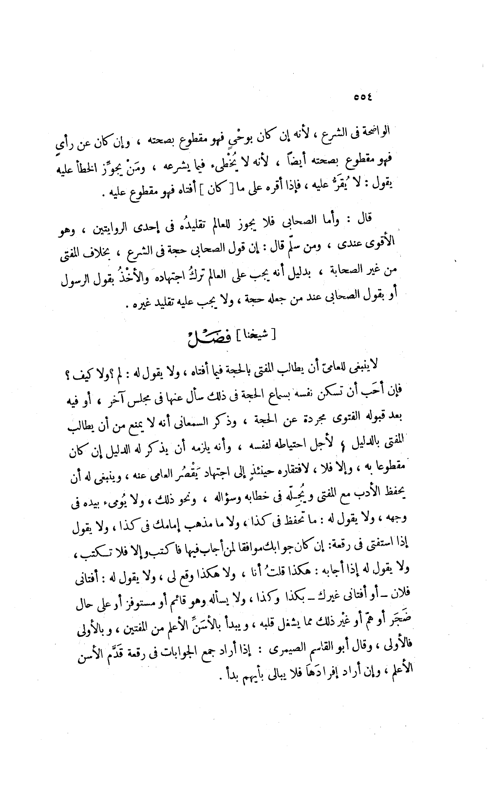 الواضحة في الشرع لأنه إن كان بوحي فهو مقطوع بصحته وإن كان عن رأى فهو مقطوع بصحته أيضا لأنه لا يخطئ فيما يشرعه ومن يجوز الخطأ عليه يقول لا يقر عليه فإن أقره على ما كان أفتاه فهو مقطوع عليه.