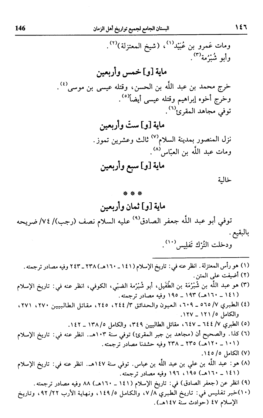 (¬9) انظر عن (جعفر الصادق) في: تاريخ الإسلام (141 - 160 هـ) 88 وفيه مصادر ترجمته.