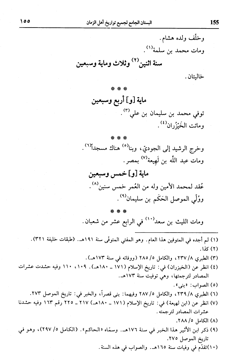 (¬4) انظر عن (الخيزران) في: تاريخ الإسلام (171 - 180 هـ) 109، 110 وفيه حشدت عشرات المصادر لترجمتها، وهي توفيت سنة 173 هـ.