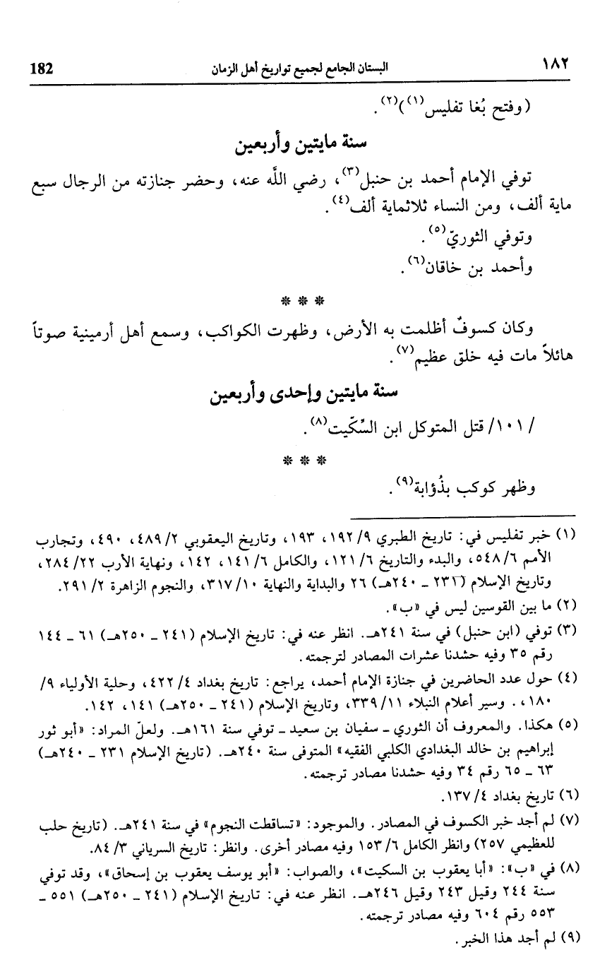 (¬3) توفي (ابن حنبل) في سنة 241 هـ. انظر عنه في: تاريخ الإسلام (241 - 250 هـ) 61 - 144 رقم 35 وفيه حشدنا عشرات المصادر لترجمته.