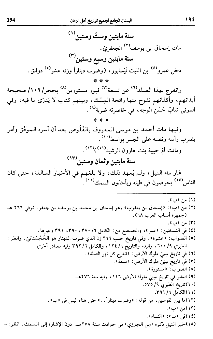 (¬15) خبر النيل ذكره (ابن الجوزي) في حوادث سنة 278 هـ. دون الإشارة إلى السمك. انظر: =