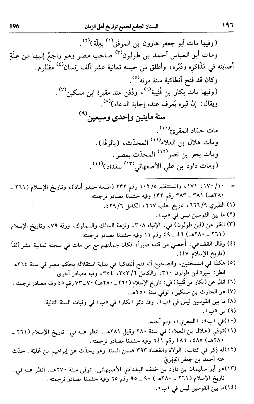 (¬6) انظر عن (بكار بن قُتيبة) في: تاريخ الإسلام (261 - 280 هـ) 70 - 73 رقم 45 وفيه مصادر ترجمته.