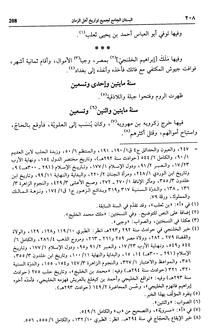 = 247، والعيون والحدائق ج 4 ق 1/ 190، 191، والمنتظم 6/ 50، وزبدة الحلب لابن العديم 1/ 90، والكامل 6/ 544 (حوادث سنة 292 هـ)، وتاريخ مختصر الدول 154، ونهاية الأرب 23/ 17، والعبر 2/ 91، ودول الإسلام 1/ 177، وتاريخ الإسلام (291 - 300 هـ) 9، وتاريخ ابن الوردي 1/ 248، ومرآة الجنان 2/ 220، والبداية والنهاية 11/ 99، وتاريخ ابن خلدون 3/ 355، ومآثر الإنافة 1/ 270 - 272، وصبح الأعشى 3/ 429، والنجوم الزاهرة 3/ 136 - 138، والدرّة السنية 317 و 319 وبدائع الزهور ج 1 ق 1/ 174، ونزهة المالك والمملوك، ورقة 79.