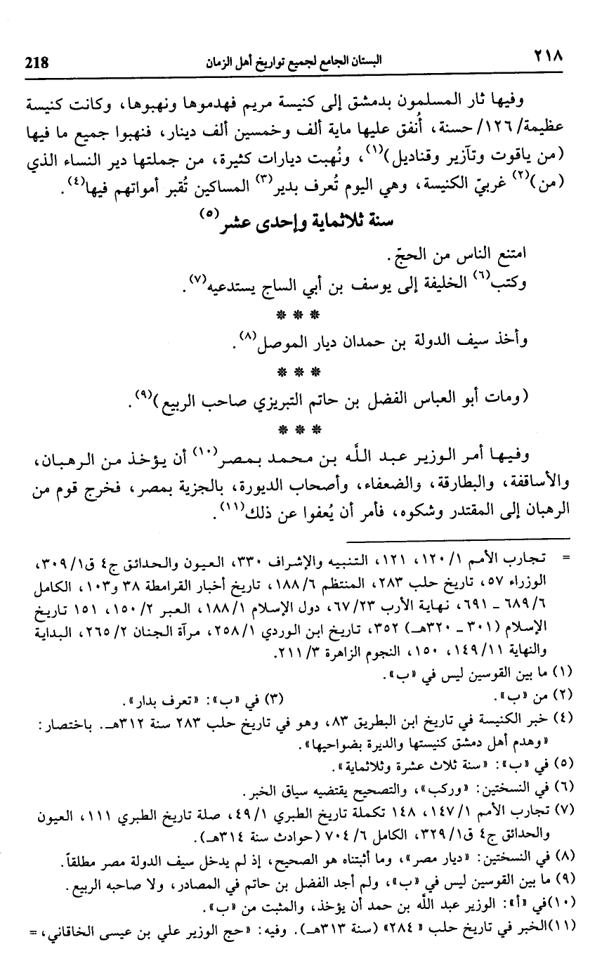 (¬4) خبر الكنيسة في تاريخ ابن البطريق 83، وهو في تاريخ حلب 283 سنة 312 هـ. باختصار: "وهدم أهل دمشق كنيستها والديرة بضواحيها".