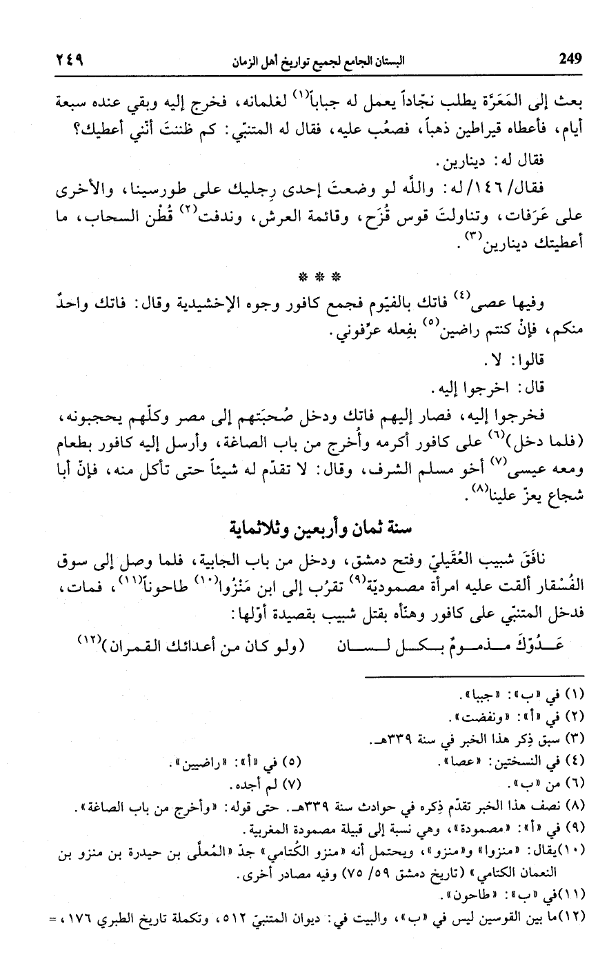 (¬12) ما بين القوسين ليس في "ب"، والبيت في: ديوان المتنبيّ 512، وتكملة تاريخ الطبري 176،=