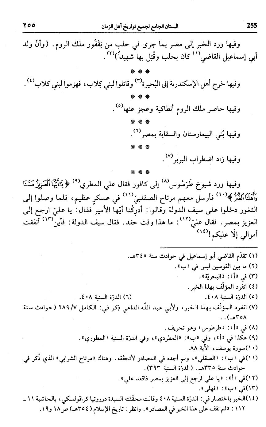 (¬14) الخبر باختصار في: الدرّة السنية 408 وقالت محققته السيدة دوروتيا كرافولسكي، بالحاشية 11 - 112: "لم نقف على هذا الخبر في المصادر". وانظر: تاريخ الإِسلام (354 هـ) ص 18 و 19.