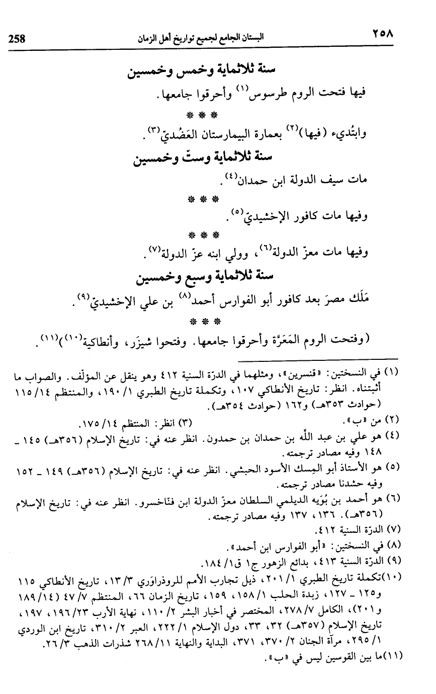 (¬10) تكملة تاريخ الطبري 1/ 201، ذيل تجارب الأمم للروذراوَري 3/ 13، تاريخ الأنطاكي 115 و 125 - 127، زبدة الحلب 1/ 158، 159، تاريخ الزمان 66، المنتظم 7/ 47 (14/ 189 و 201)، الكامل 7/ 278، المختصر في أخبار البشر 2/ 110، نهاية الأرب 23/ 196، 197، تاريخ الإِسلام (357 هـ) 32، 33، دول الإِسلام 1/ 222، العبر 2/ 310، تاريخ ابن الوردي 1/ 295، مرآة الجنان 2/ 370، 371، البداية والنهاية 11/ 268 شذرات الذهب 3/ 26.