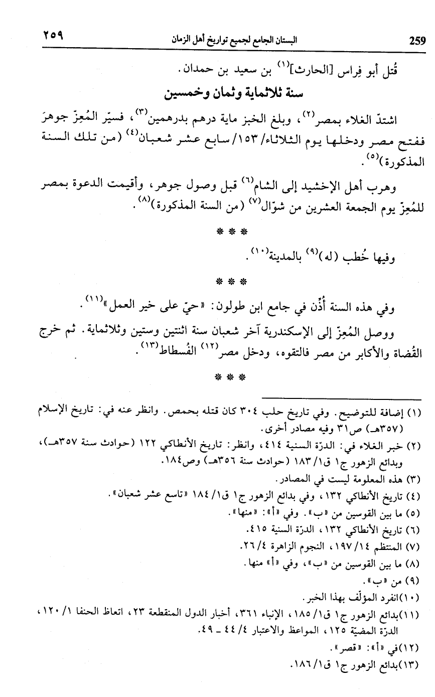 (¬2) خبر الغلاء في: الدرّة السنية 414، وانظر: تاريخ الأنطاكي 122 (حوادث سنة 357 هـ)، وبدائع الزهور ج 1 ق 1/ 183 (حوادث سنة 356 هـ) وص 184.