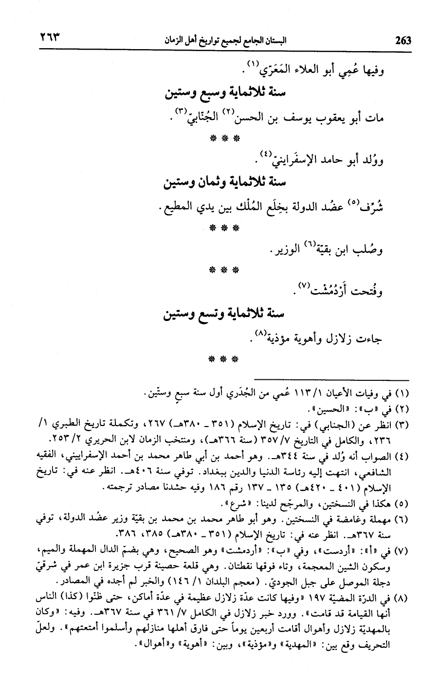 (¬3) انظر عن (الجنابي) في: تاريخ الإِسلام (351 - 380 هـ) 267، وتكملة تاريخ الطبري 1/ 236، والكامل في التاريخ 7/ 357 (سنة 366 هـ)، ومنتخب الزمان لابن الحريري 2/ 253.
