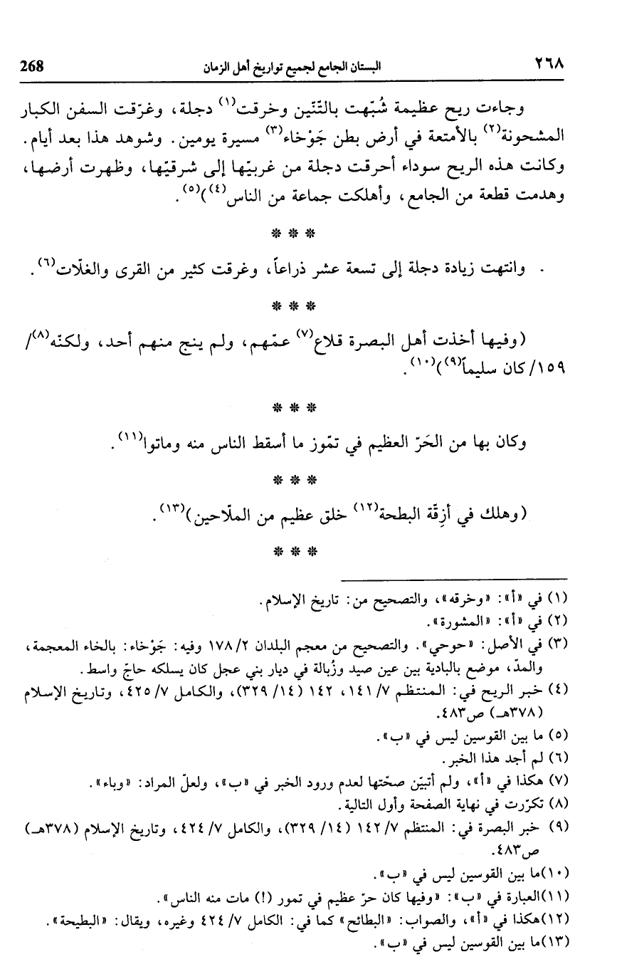 (¬9) خبر البصرة في: المنتظم 7/ 142 (14/ 329)، والكامل 7/ 424، وتاريخ الإِسلام (378 هـ) ص 483.