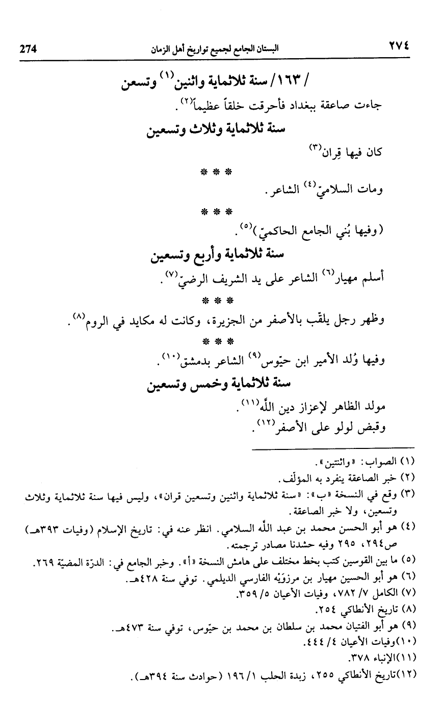 (¬3) وقع في النسخة "ب": "سنة ثلاثماية واثنين وتسعين قرآن"، وليس فيها سنة ثلاثماية وثلاث وتسعين، ولا خبر الصاعقة.