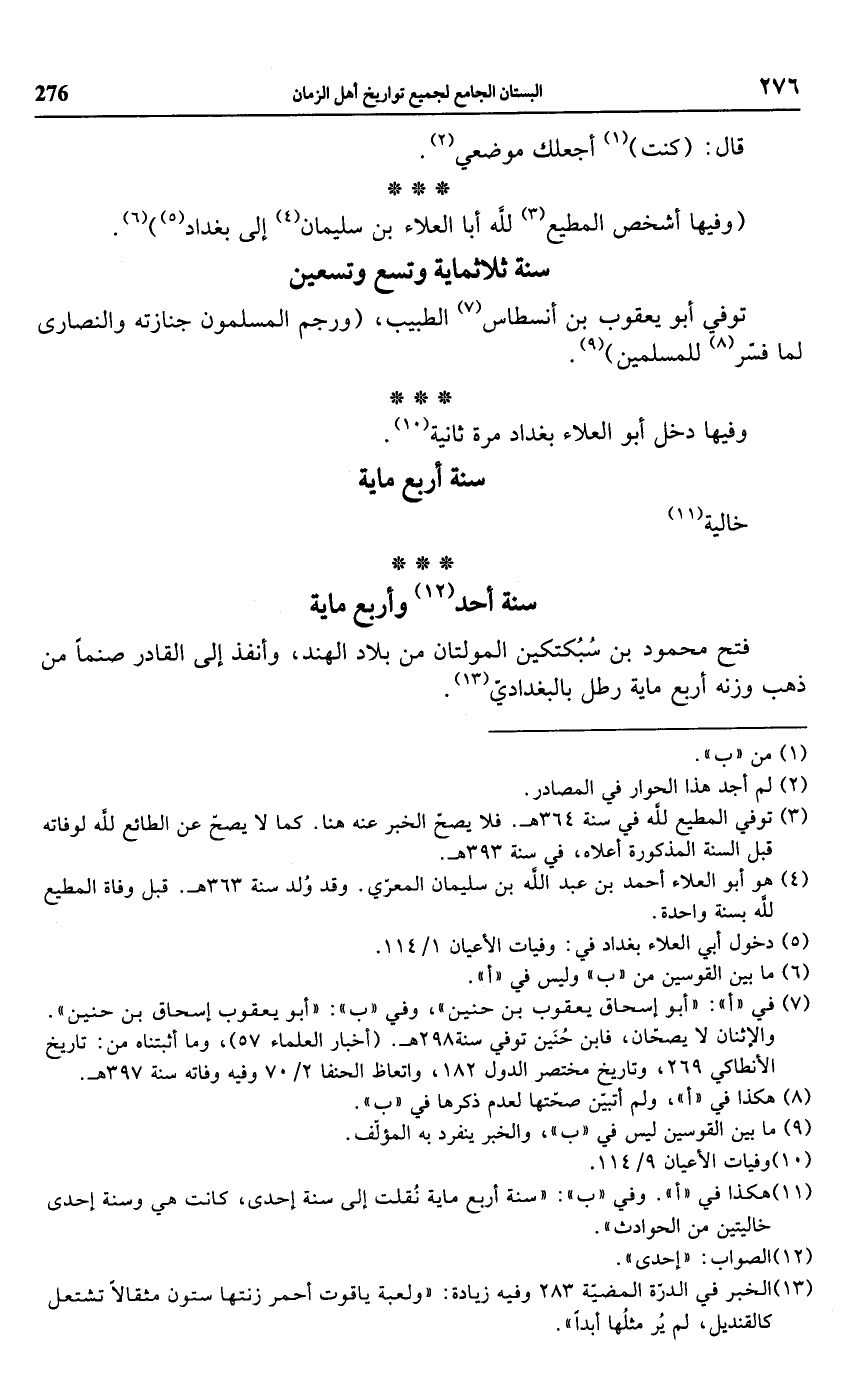 (¬3) توفي المطيع لله في سنة 364 هـ. فلا يصحّ الخبر عنه هنا. كما لا يصحّ عن الطائع لله لوفاته قبل السنة المذكورة أعلاه، في سنة 393 هـ.