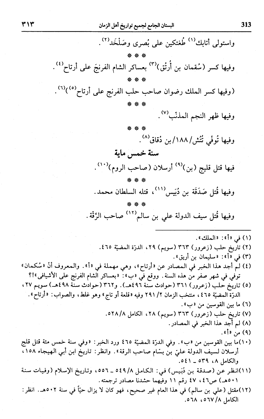 (¬7) تاريخ حلب (زعرور) 363 (سويم) 28، الكامل 8/ 528.