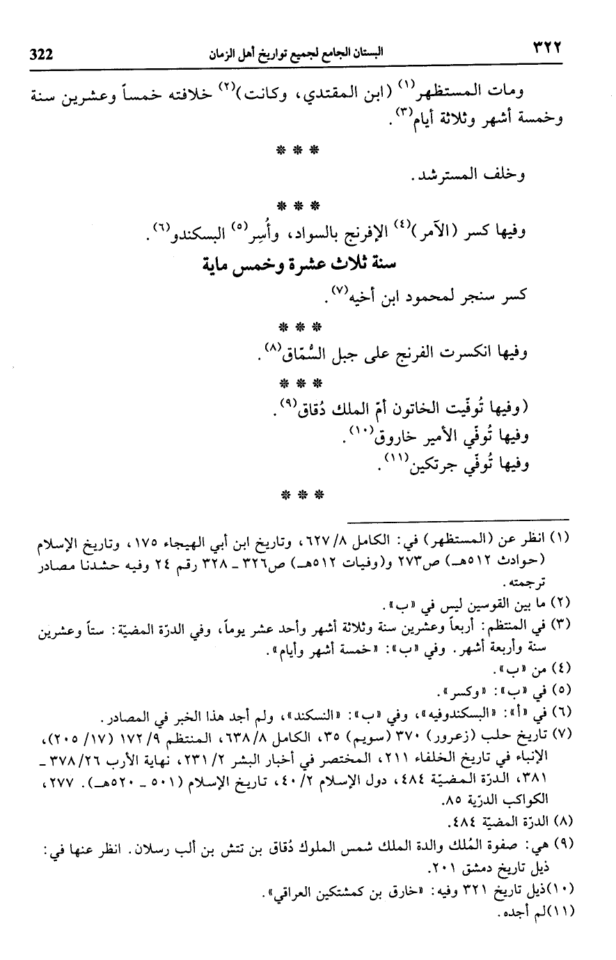 (¬1) انظر عن (المستظهر) في: الكامل 8/ 627، وتاريخ ابن أبي الهيجاء 175، وتاريخ الإسلام (حوادث 512 هـ) ص 273 و (وفيات 512 هـ) ص 326 - 328 رقم 24 وفيه حشدنا مصادر ترجمته.