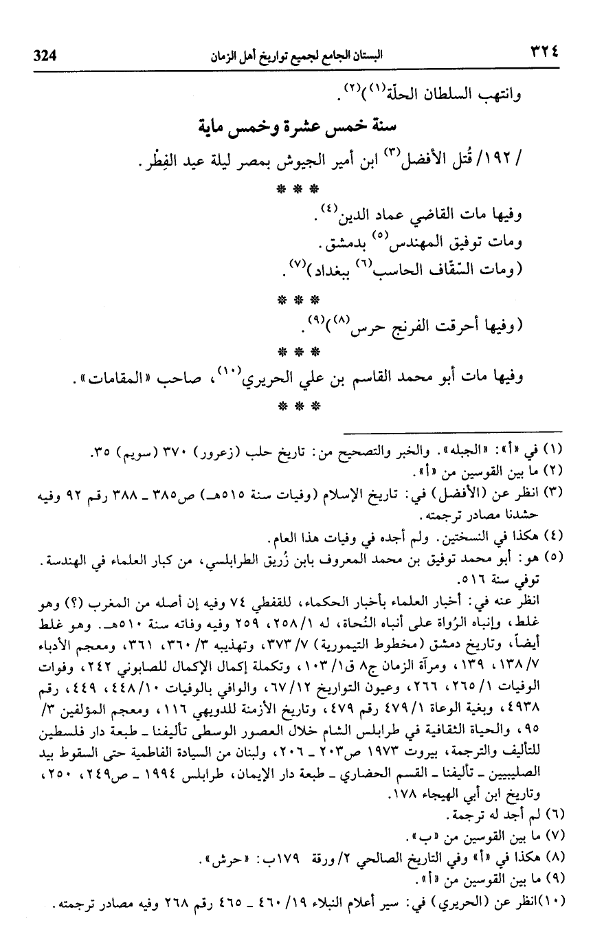 (¬3) انظر عن (الأفضل) في: تاريخ الإسلام (وفيات سنة 515 هـ) ص 385 - 388 رقم 92 وفيه حشدنا مصادر ترجمته.