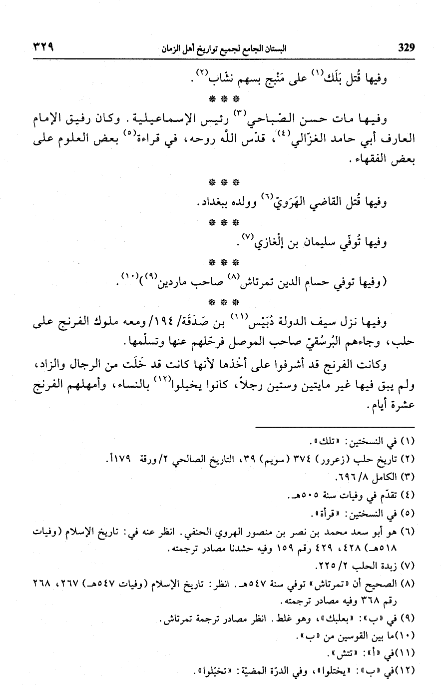 (¬8) الصحيح أن "تمرتاش" توفي سنة 547 هـ. انظر: تاريخ الإسلام (وفيات 547 هـ) 267، 268 رقم 368 وفيه مصادر ترجمته.
