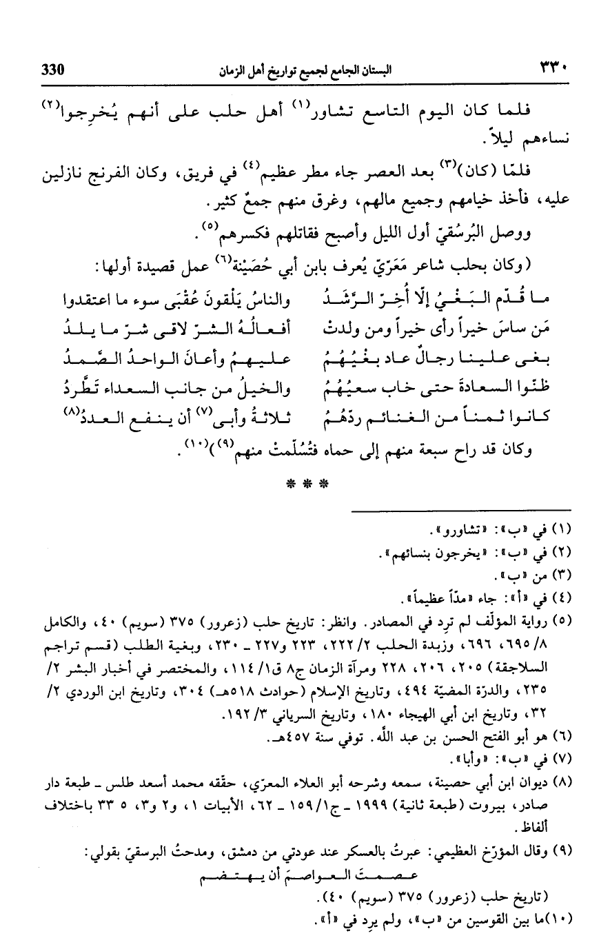 (تاريخ حلب (زعرور) 375 (سويم) 40).