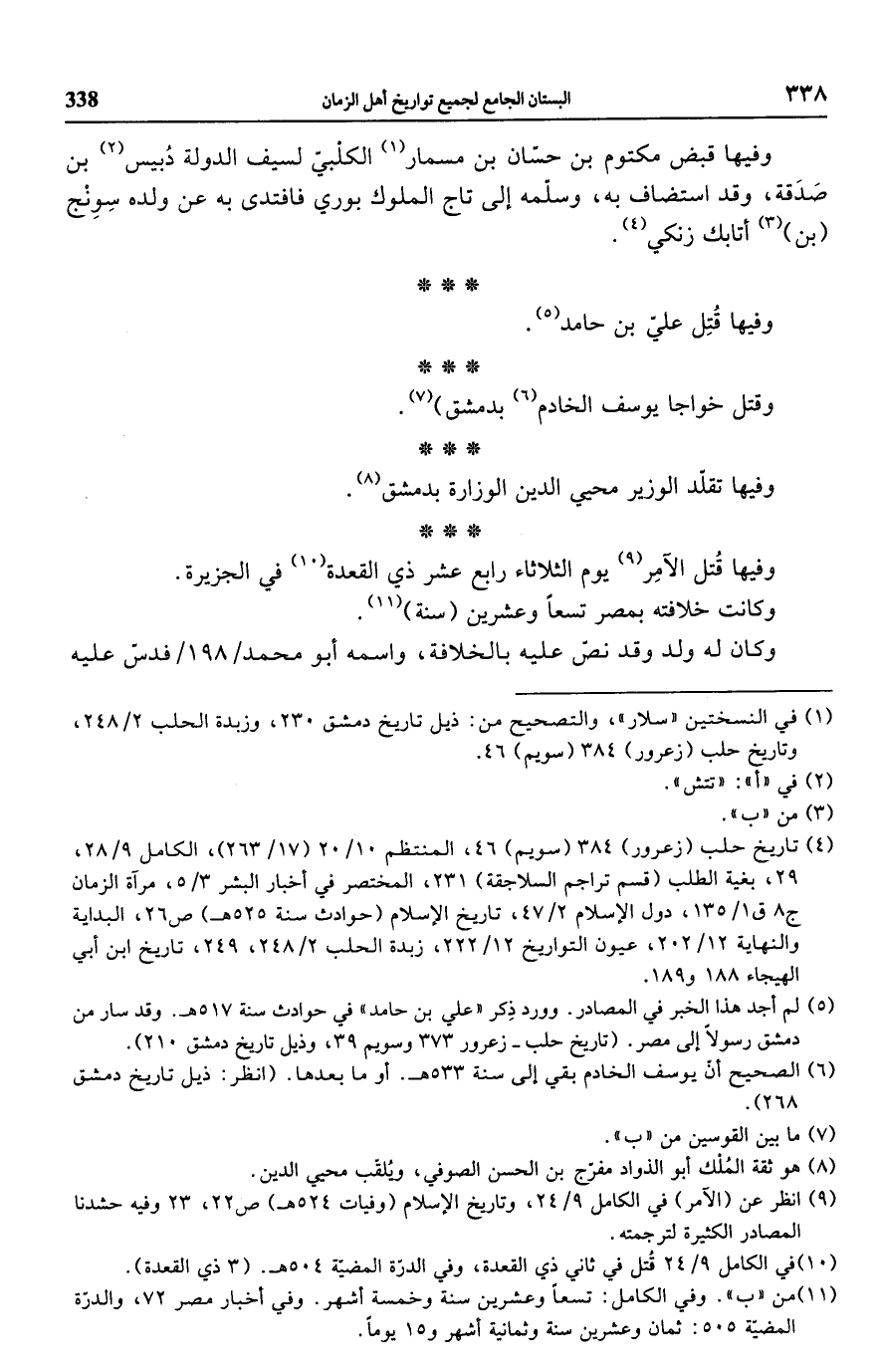 (¬6) الصحيح أنّ يوسف الخادم بقي إلى سنة 533 هـ. أو ما بعدها. (انظر: ذيل تاريخ دمشق 268).