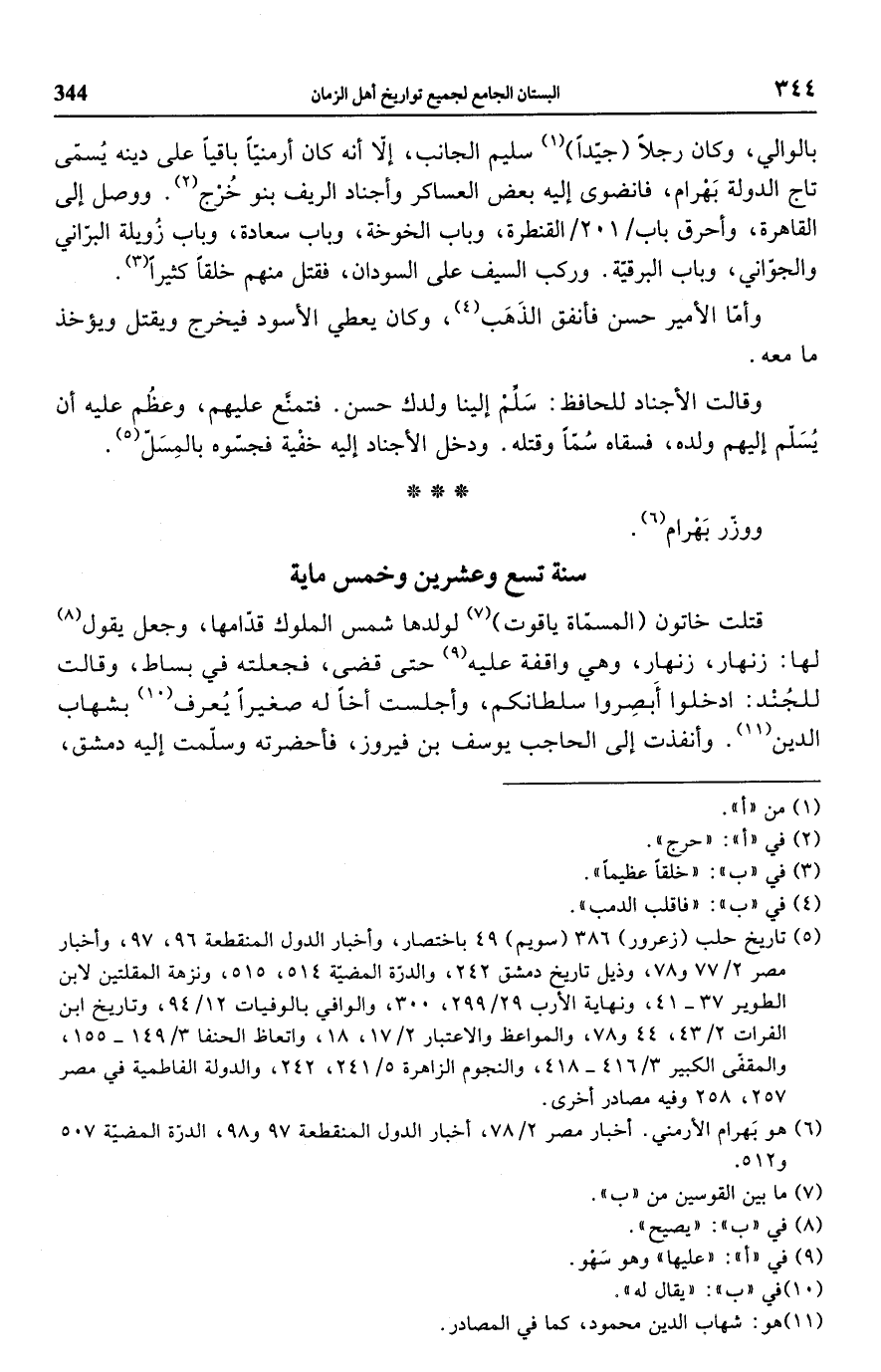 (¬6) هو بَهرام الأرمني. أخبار مصر 2/ 78، أخبار الدول المنقطعة 97 و 98، الدرّة المضيّة 507 و 512.