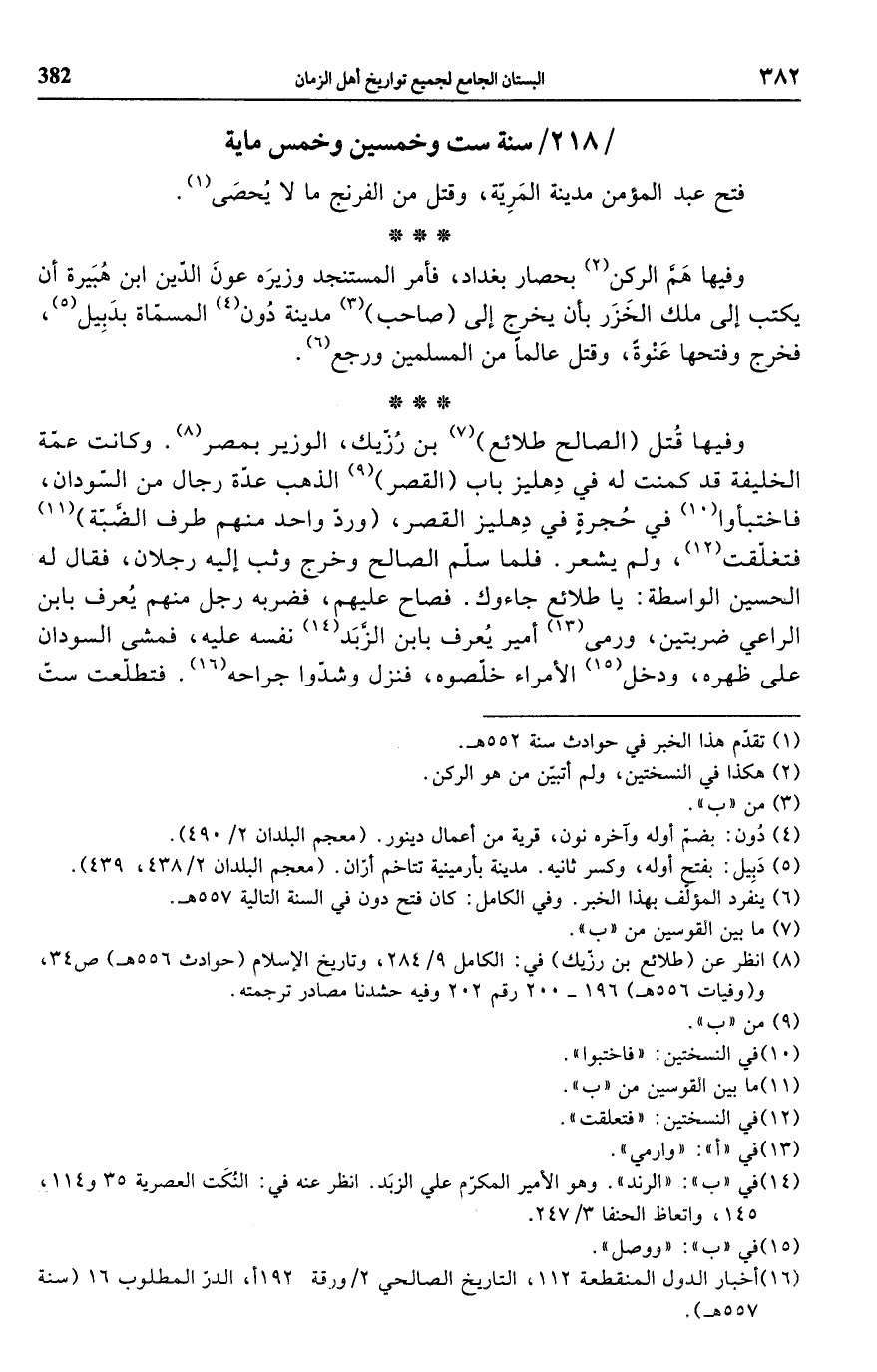 (¬8) انظر عن (طلائع بن رزّيك) في: الكامل 9/ 284، وتاريخ الإسلام (حوادث 556 هـ) ص 34، و (وفيات 556 هـ) 196 - 200 رقم 202 وفيه حشدنا مصادر ترجمته.