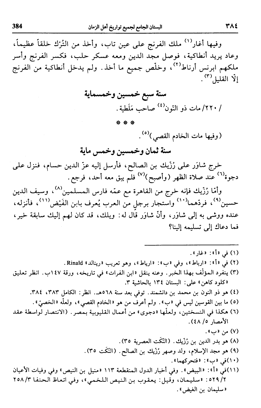 (¬3) ينفرد المؤلّف بهذا الخبر. وعنه ينقل"ابن الفرات" في تاريخه، ورقة 147 ب. انظر تعليق "كلود كاهن" على: البستان 134 بالحاشية 3.