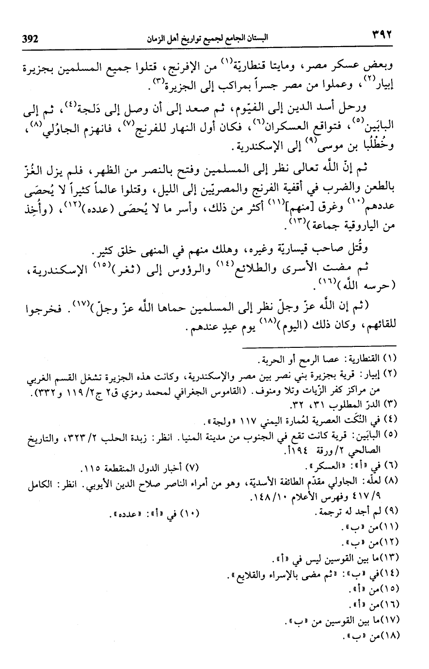وبعض عسكر مصر، ومايتا قنطارية (¬1) من الإفرنج، قتلوا جميع المسلمين بجزيرة إبيار (¬2)، وعملوا من مصر جسراً بمراكب إلى الجزيرة (¬3).