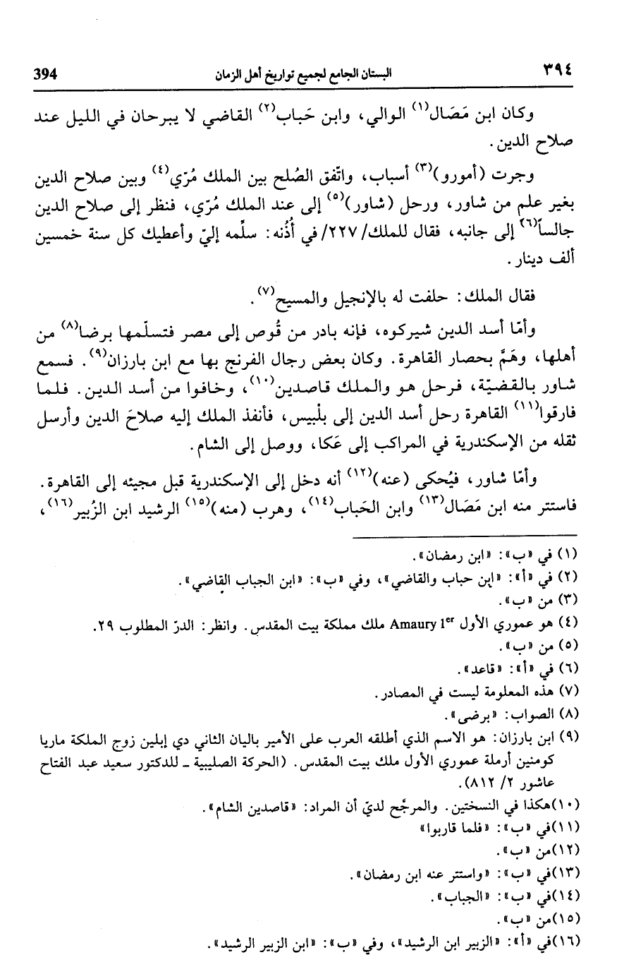 (¬9) ابن بارزان: هو الاسم الذي أطلقه العرب على الأمير باليان الثاني دي إبلين زوج الملكة ماريا كومنين أرملة عموري الأول ملك بيت المقدس. (الحركة الصليبية - للدكتور سعيد عبد الفتاح عاشور 2/ 812).