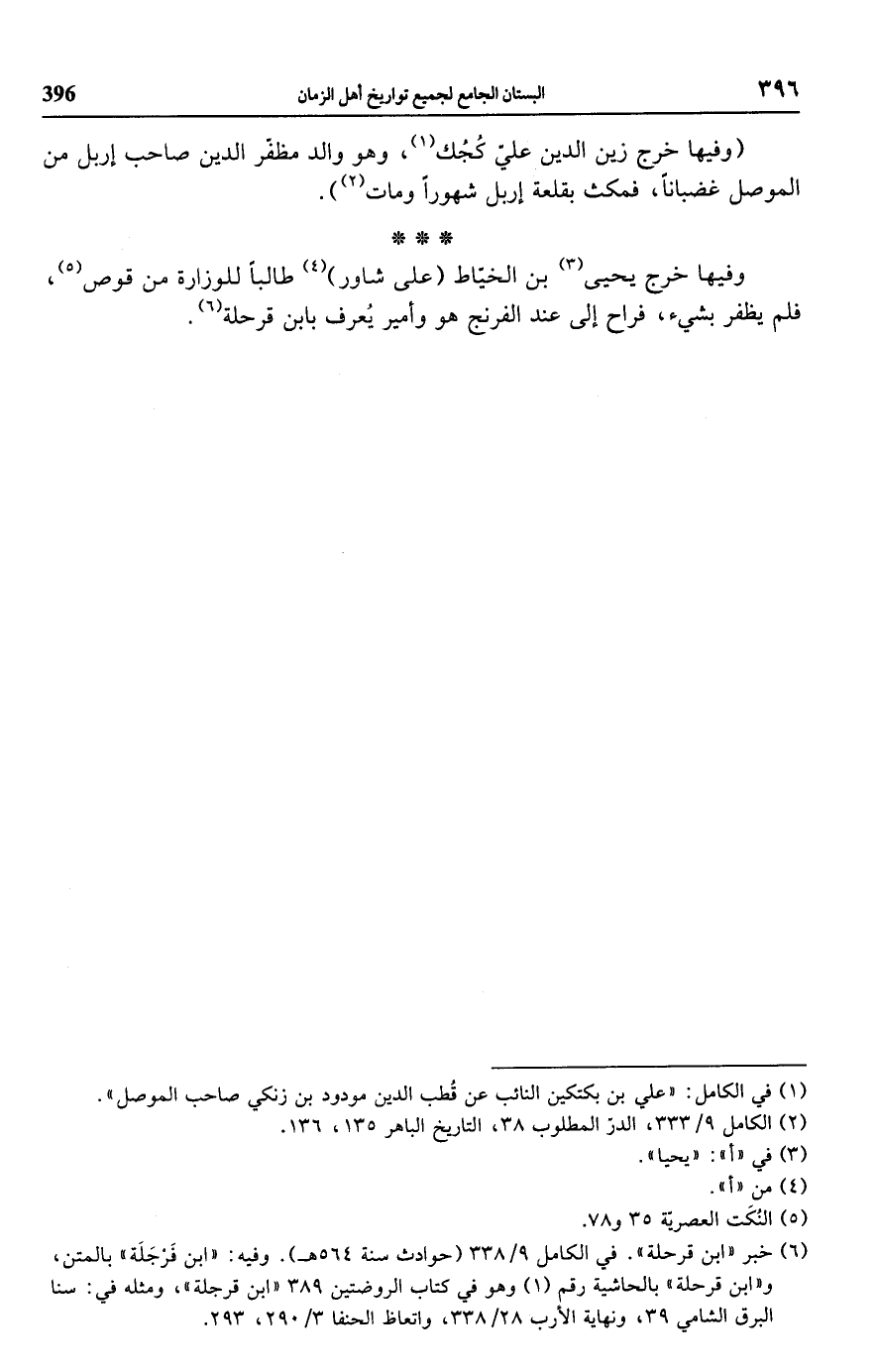 (¬6) خبر "ابن قرحلة". في الكامل 9/ 338 (حوادث سنة 564 هـ). وفيه: "ابن فَرْجَلَة" بالمتن، و "ابن قرحلة" بالحاشية رقم (1) وهو في كتاب الروضتين 389 "ابن قرجلة"، ومثله في: سنا البرق الشامي 39، ونهاية الأرب 28/ 338، واتعاظ الحنفا 3/ 290، 293.
