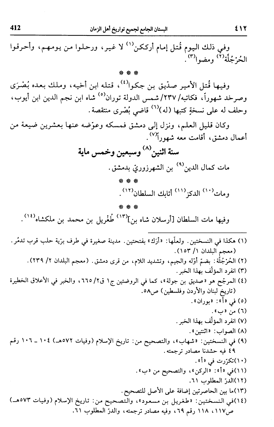 (¬14) في النسختين: "طغريل بن مسعود"، والتصحيح من: تاريخ الإسلام (وفيات 573 هـ) ص 117، 118 رقم 69، وفيه مصادر ترجمته، والدر المطلوب 61.