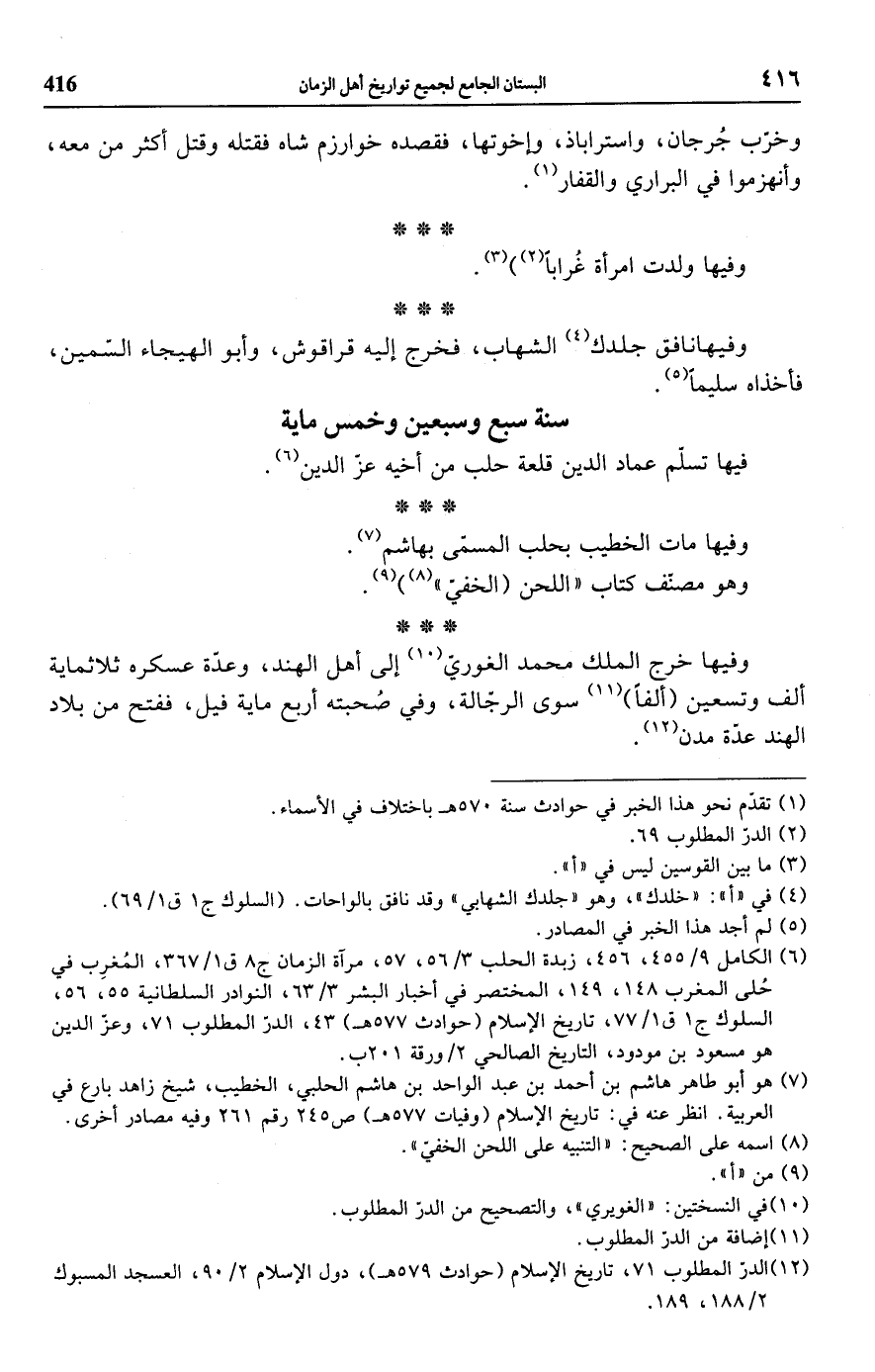 (¬12) الدرّ المطلوب 71، تاريخ الإسلام (حوادث 579 هـ)، دول الإسلام 2/ 90، العسجد المسبوك 2/ 188، 189.