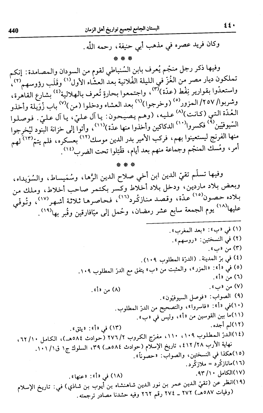 (¬19) انظر عن (تقيّ الدين عمر بن نور الدين شاهنشاه بن أيوب بن شاذي) في: تاريخ الإسلام (وفيات 587 هـ (272 - 274 رقم 262 وفيه حشدنا مصادر ترجمته.