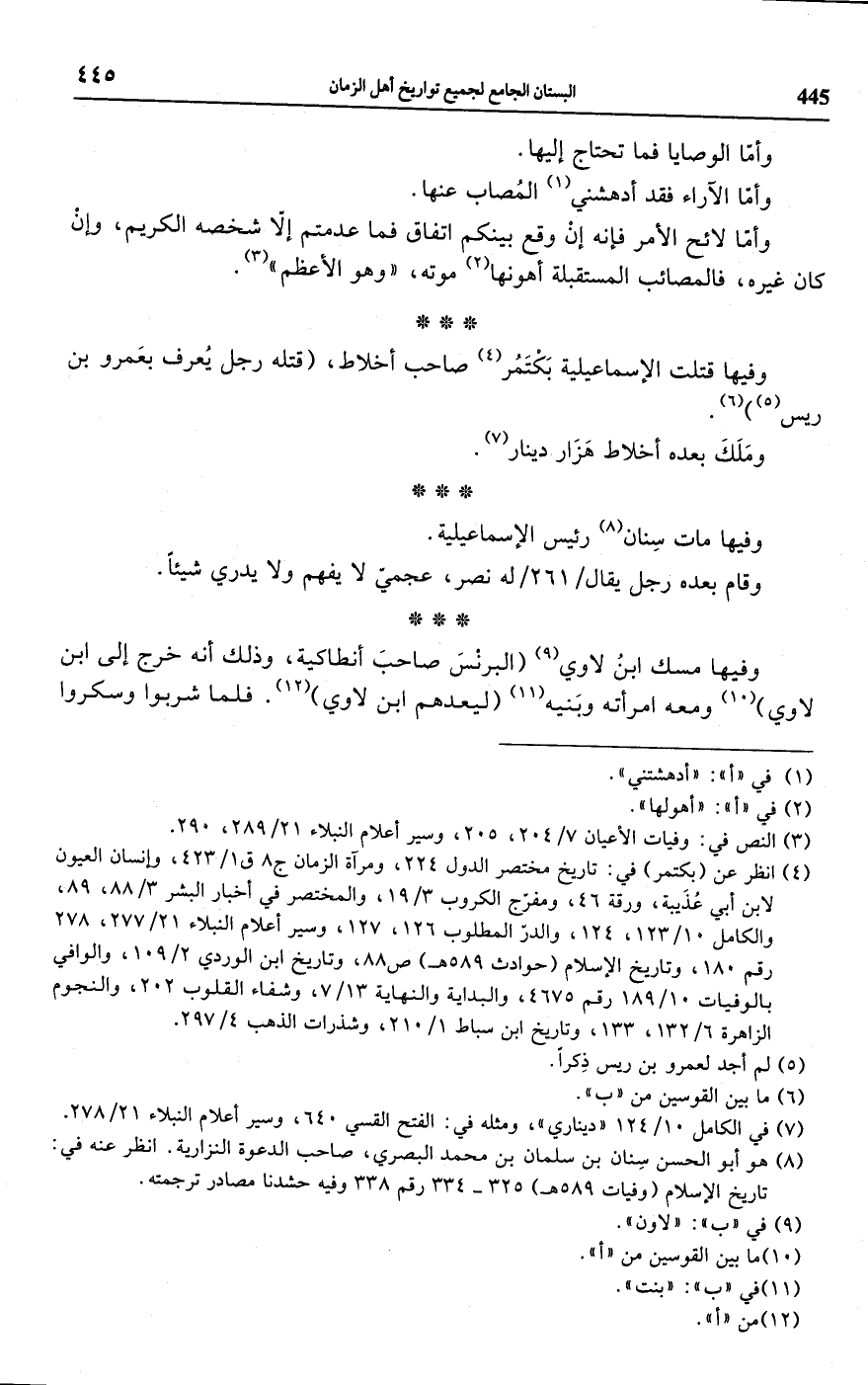 (¬8) هو أبو الحسن سِنان بن سلمان بن محمد البصري، صاحب الدعوة النزارية. انظر عنه في: تاريخ الإسلام (وفيات 589 هـ) 325 - 334 رقم 338 وفيه حشدنا مصادر ترجمته.