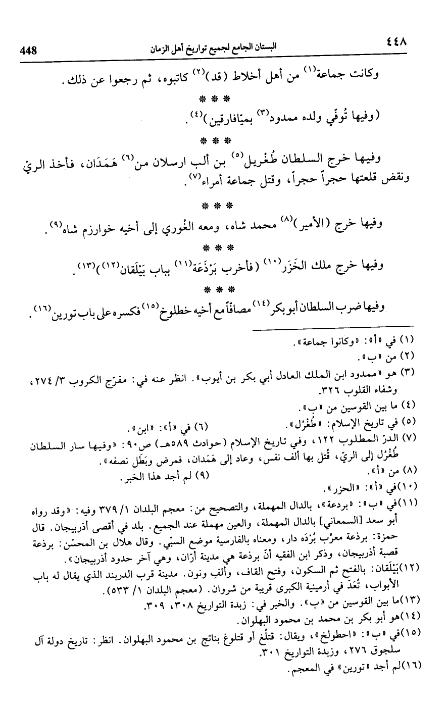 (¬15) في "ب": "احطولخ"، ويقال: قتلُغ أو قتلوغ بناتج بن محمود البهلوان. انظر: تاريخ دولة آل سلجوق 276، وزبدة التواريخ 301.
