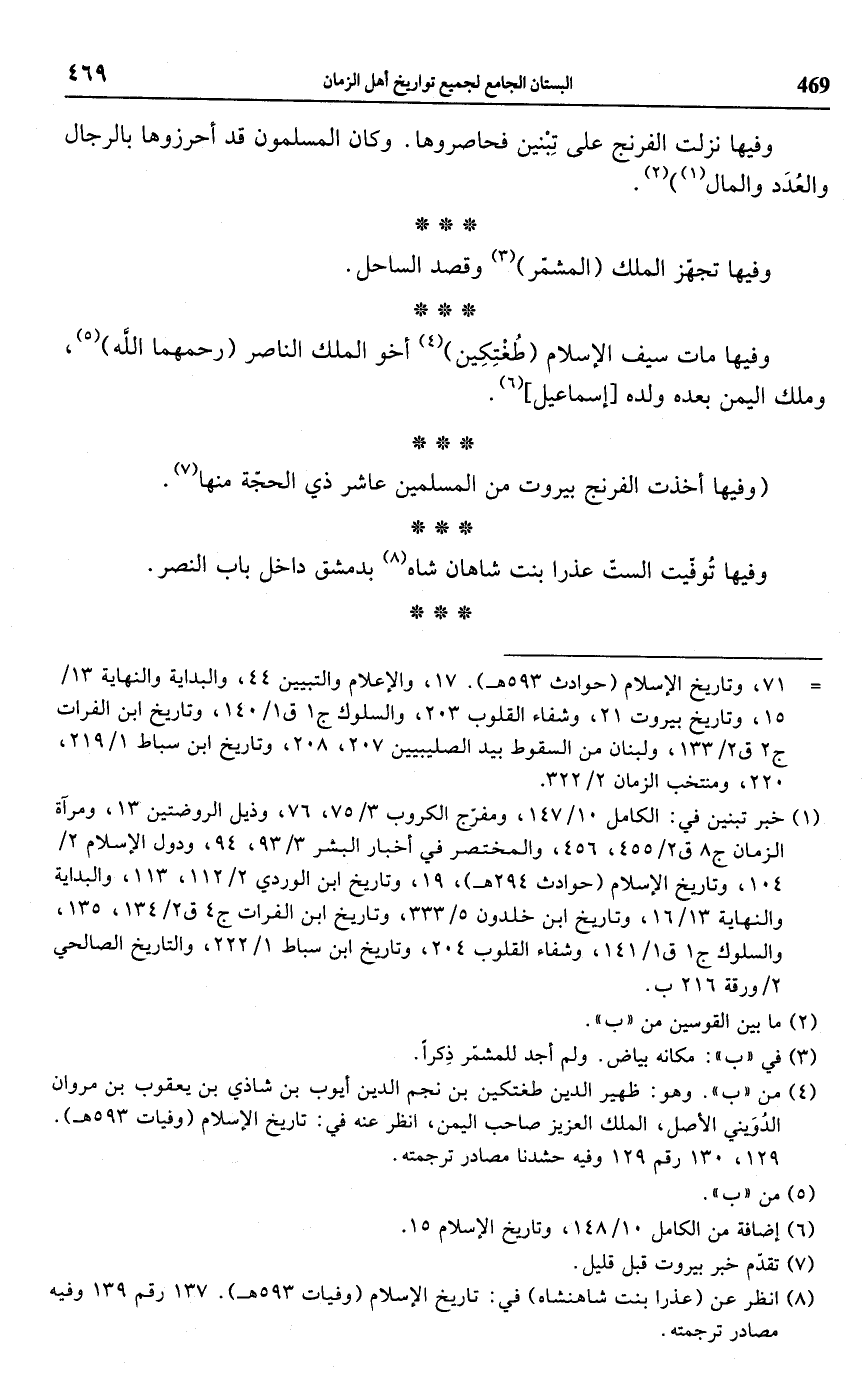 (¬8) انظر عن (عذرا بنت شاهنشاه) في: تاريخ الإسلام (وفيات 593 هـ) 1370 رقم 139 وفيه مصادر ترجمته.