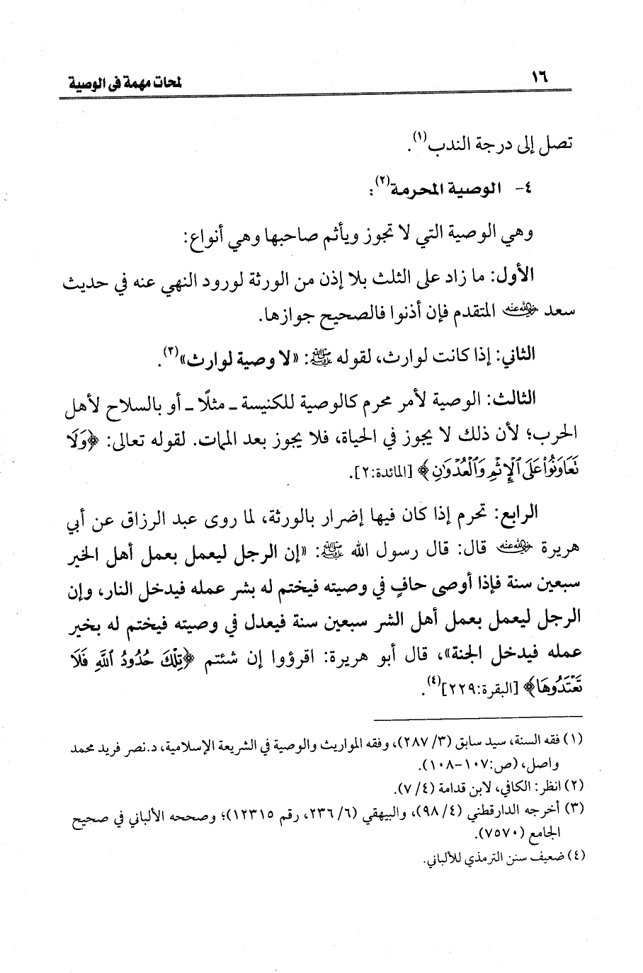 (¬1) فقه السنة، سيد سابق (3/ 287)، وفقه المواريث والوصية في الشريعة الإسلامية، د. نصر فريد محمد واصل، (ص: 107 - 108).