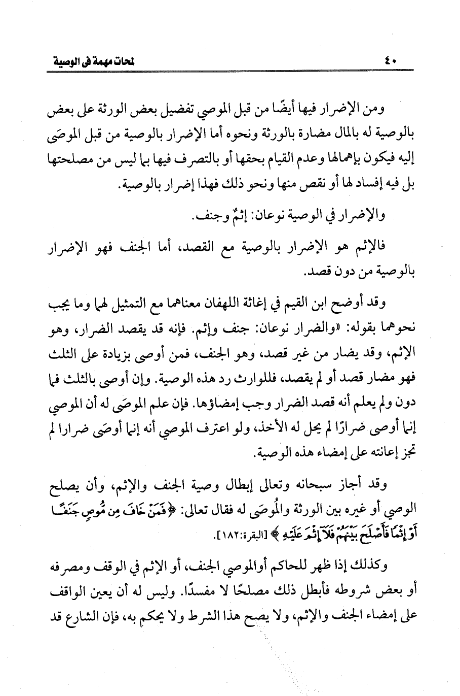 فالإثم هو الإضرار بالوصية مع القصد، أما الجنف فهو الإضرار بالوصية من دون قصد.