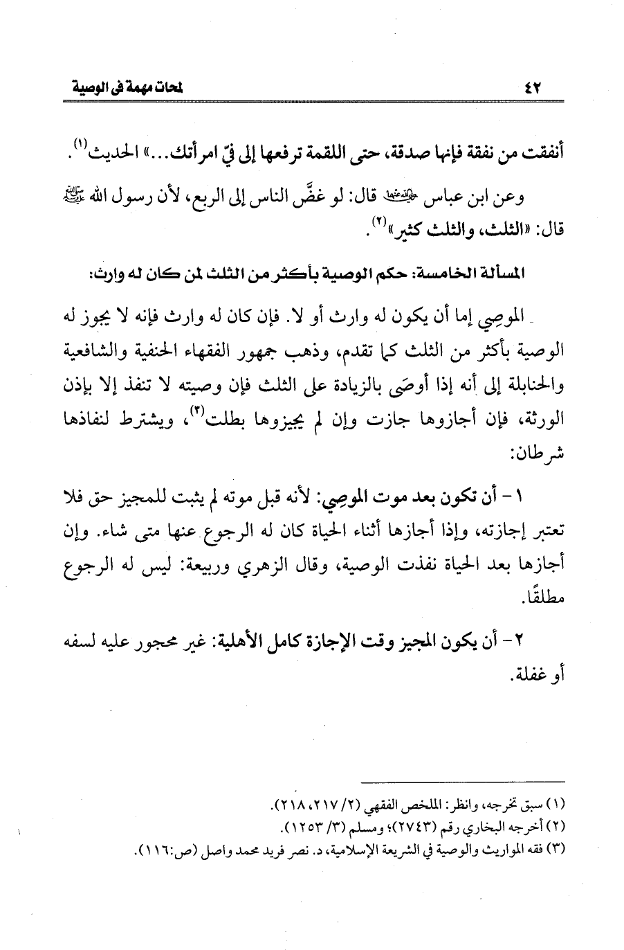 (¬3) فقه المواريث والوصية في الشريعة الإسلامية، د. نصر فريد محمد واصل (ص: 116).